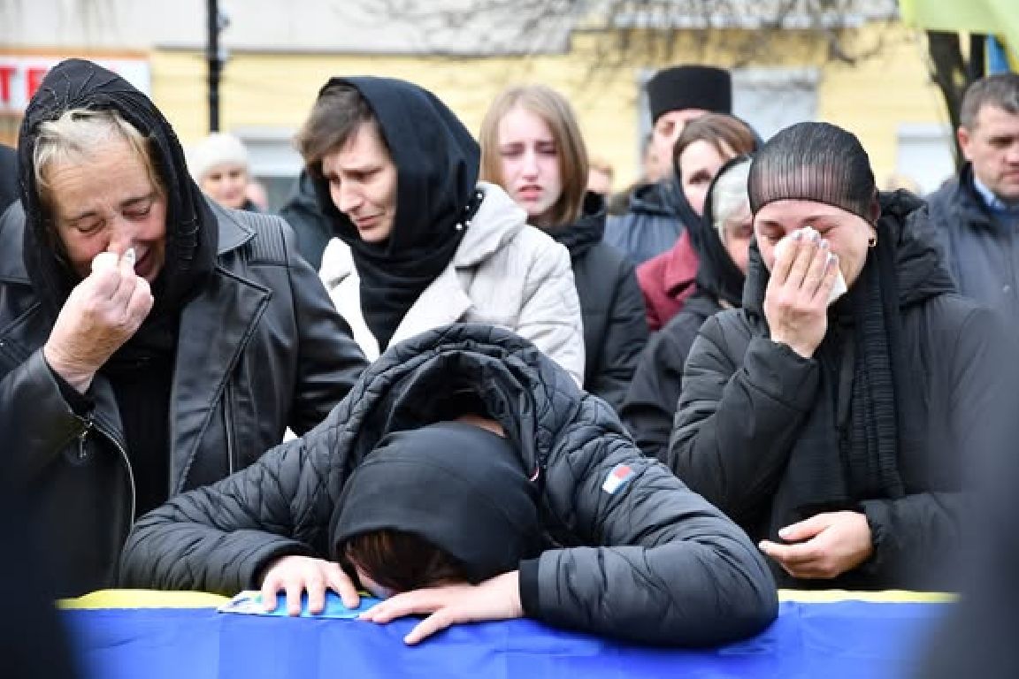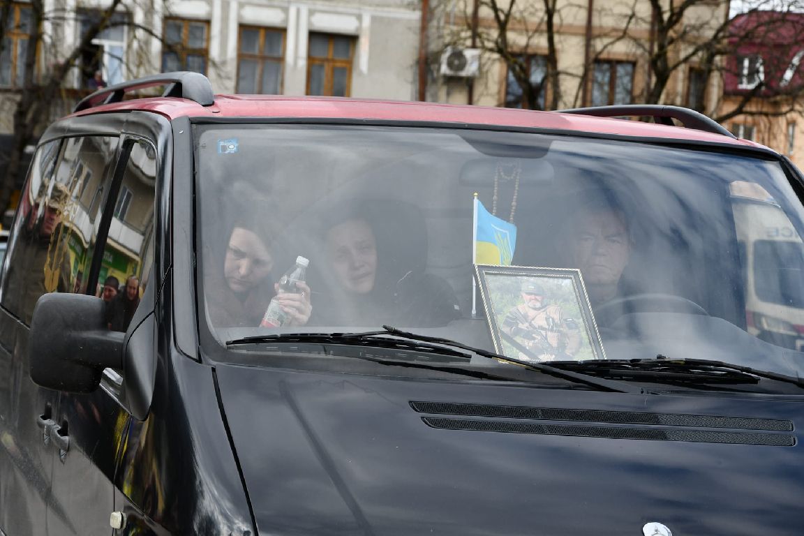 Вона ніжно гладить домовину із синьо-жовтим стягом, наче надійне плече того, хто усі ці роки був її другом, підтримкою і коханням всього життя. Того, з ким ділила радість і сумні моменти, виховала прекрасних доньок й дочекала онуків… Але, на жаль, вже не зможе обійняти в день, коли закінчиться ця страшна війна… Її Івана.