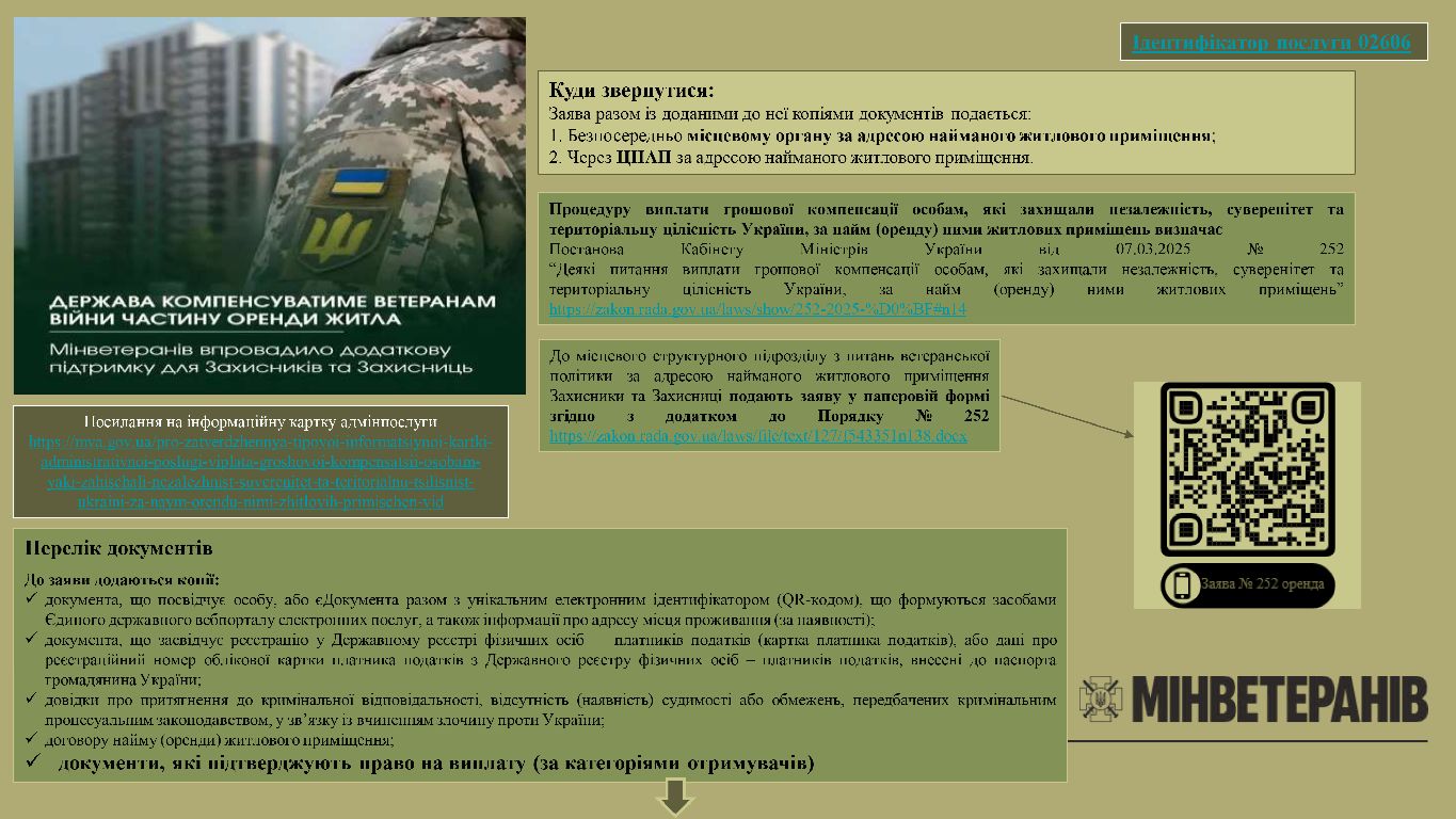 Виплата грошової компенсації особам, які захищали незалежність, суверенітет та територіальну цілісність України, за найм (оренду) ними житлових приміщень