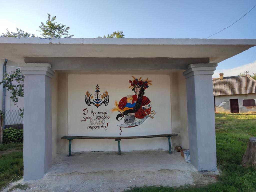 Стара мурована зупинка у рідному селі дівчини за один день перетворилася на яскраву патріотичну "емблему" всього округу, наділену багатьма символами.