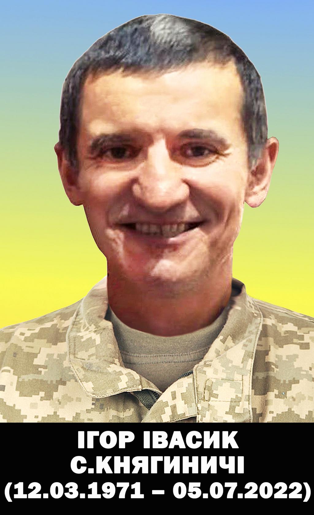 Довідково: Ігор Івасик (12.03.1971-05.07.2022) народився 12 березня 1971 року у с.Княгиничі. Навчався у ліцеї № 81 імені Петра Сагайдачного Львівської міської ради. У 1989-1991 роках служив у місті Балтійськ. У мирний час займав керівну посаду у логістично-транспортній компанії. Багато років проживав у Львові.