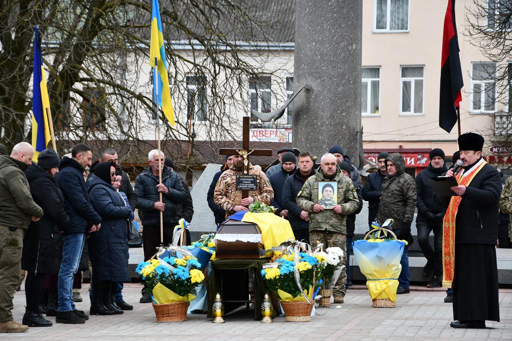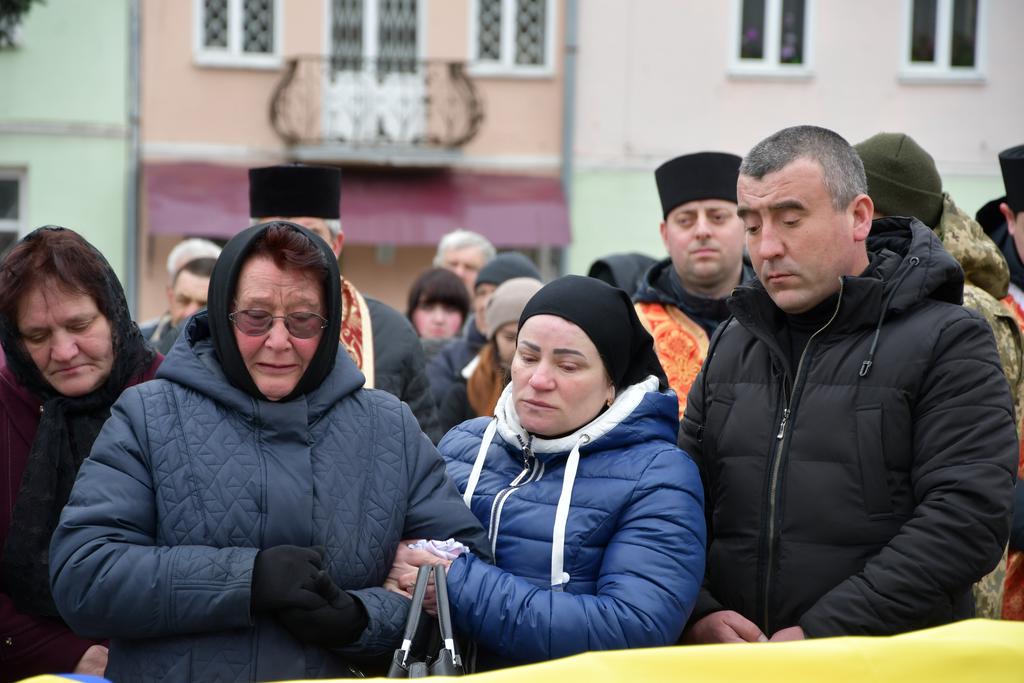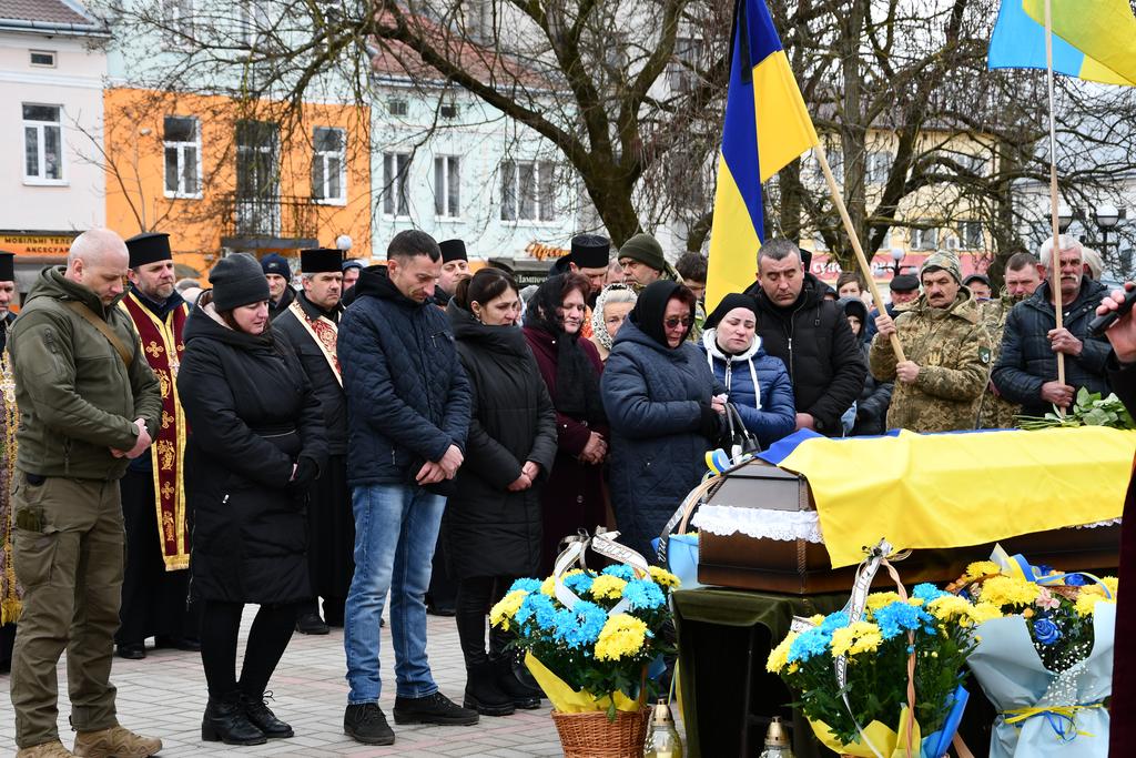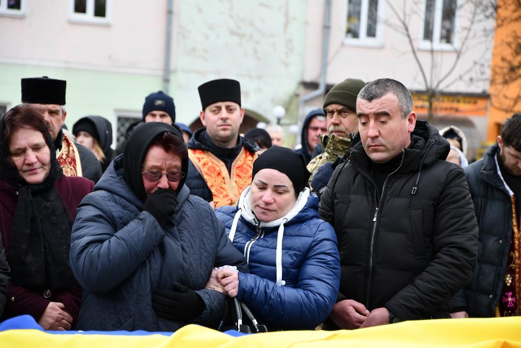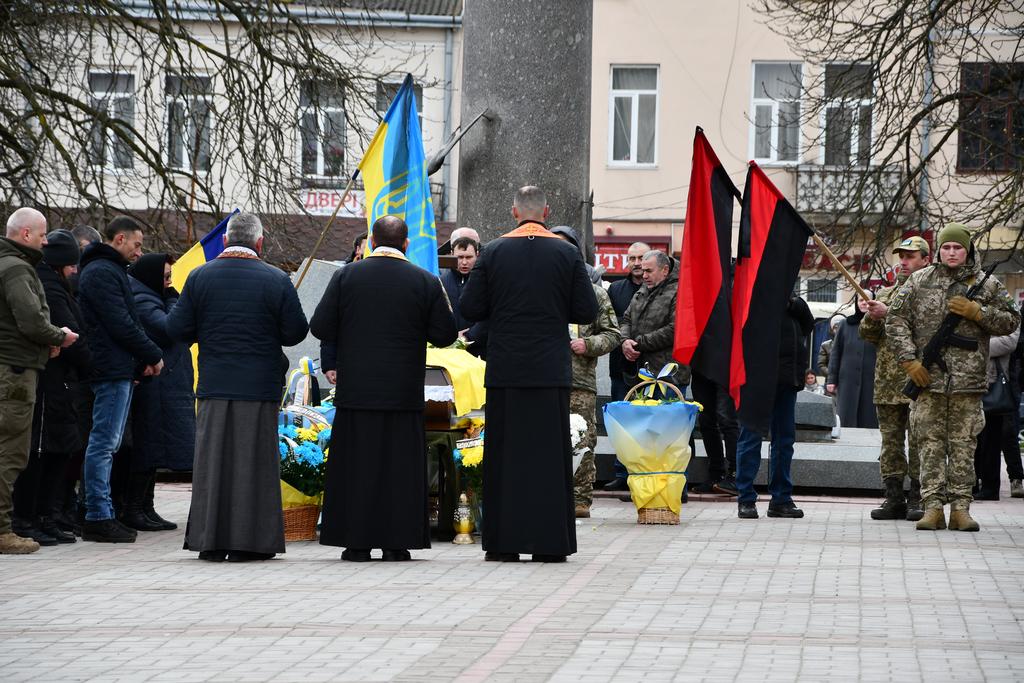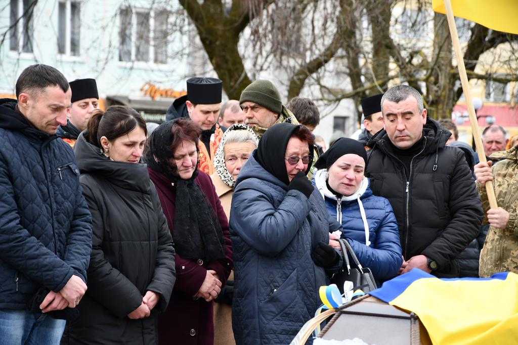 У цей по-зимовому холодний день квітня Рогатинська громада прощається загиблим Захисником Романом Споловичом зі с.Пуків.