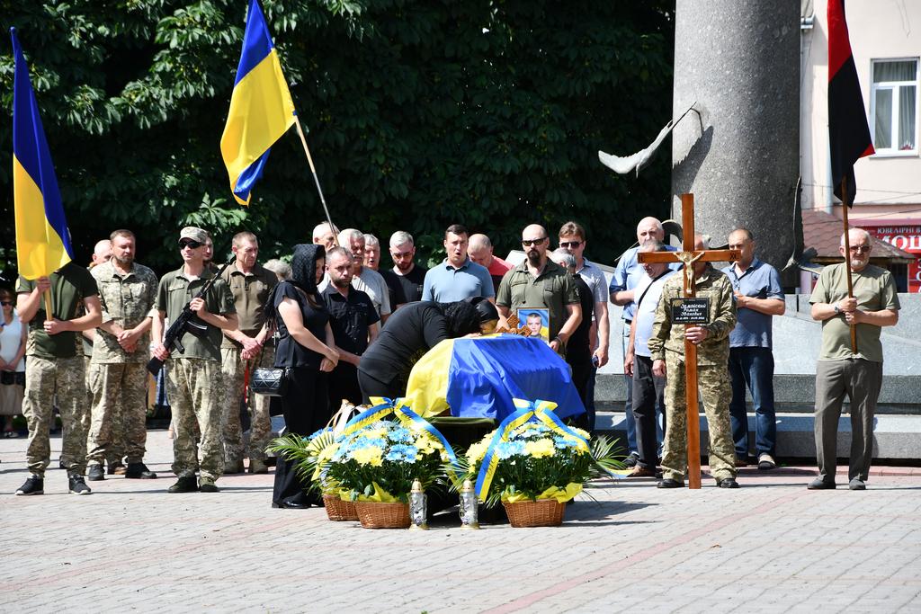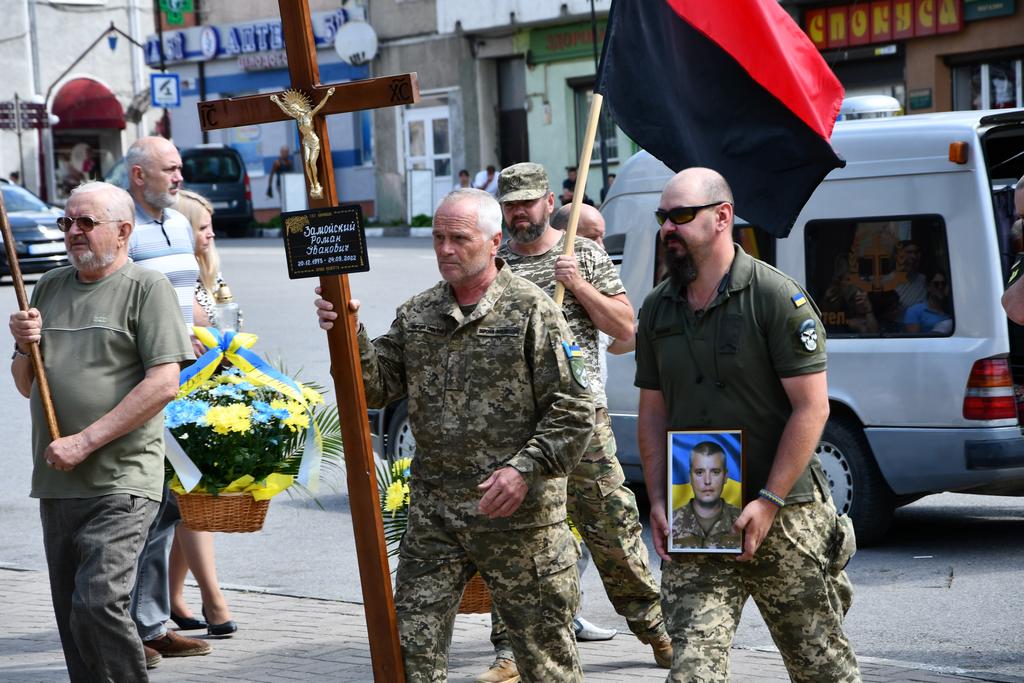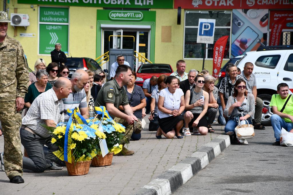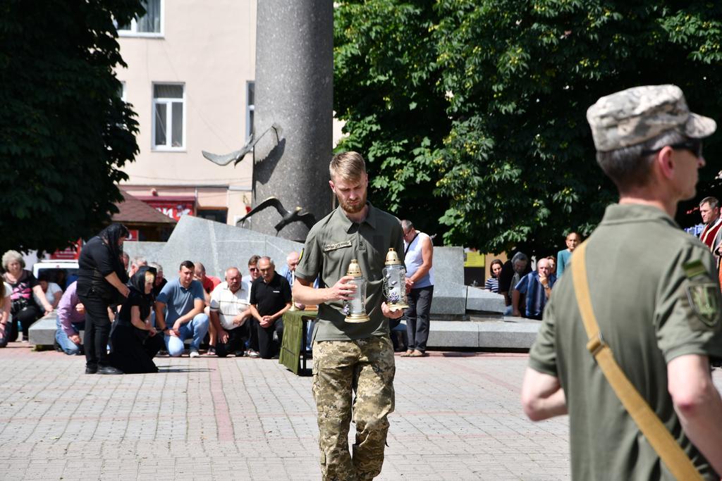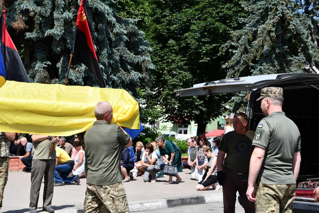 На фото – Рогатинська громада зустрічає Захисника «живим коридором», щоб провести дорогою у Вічність.