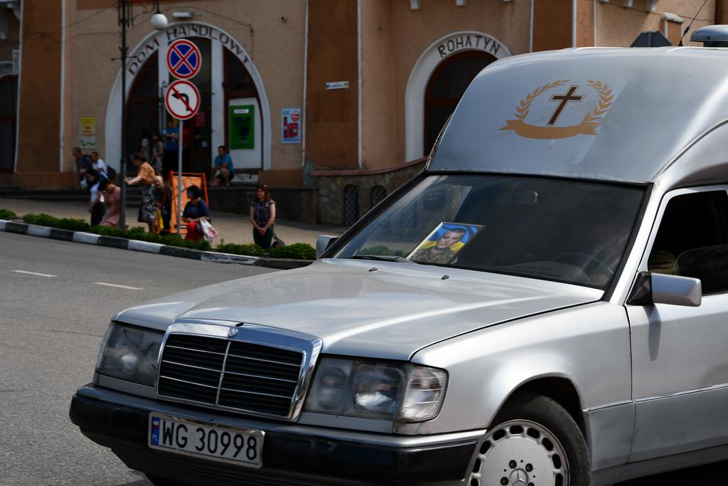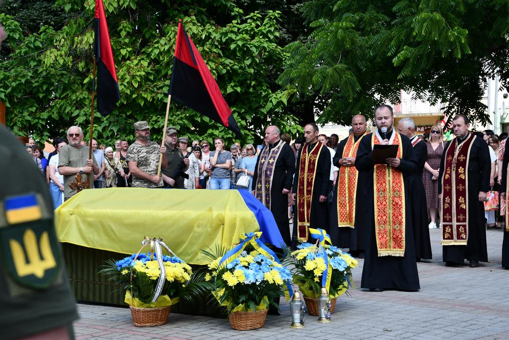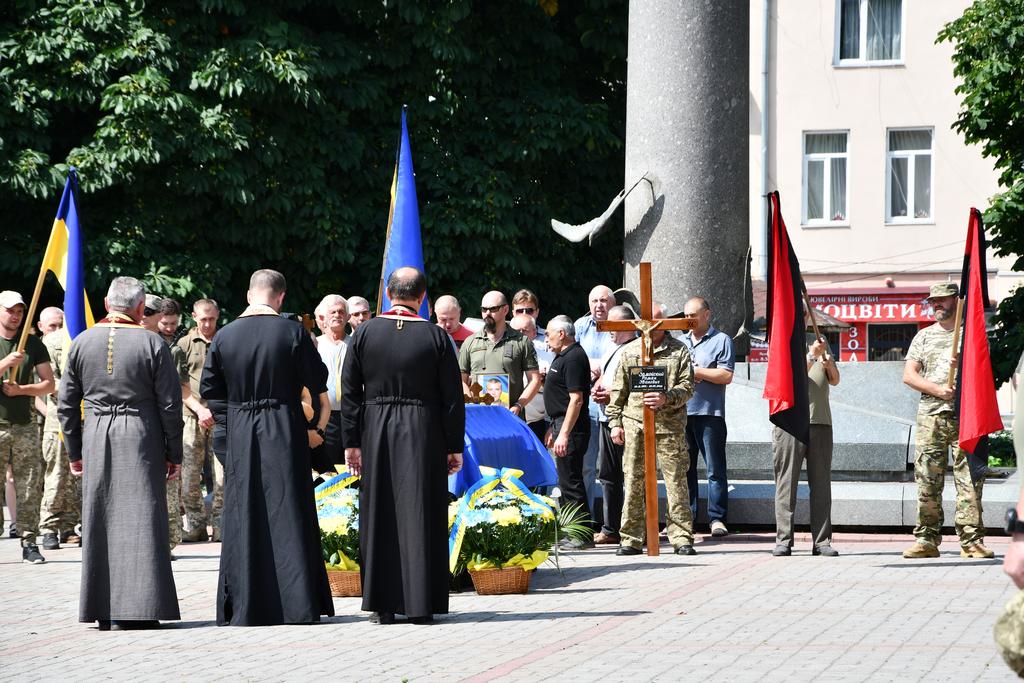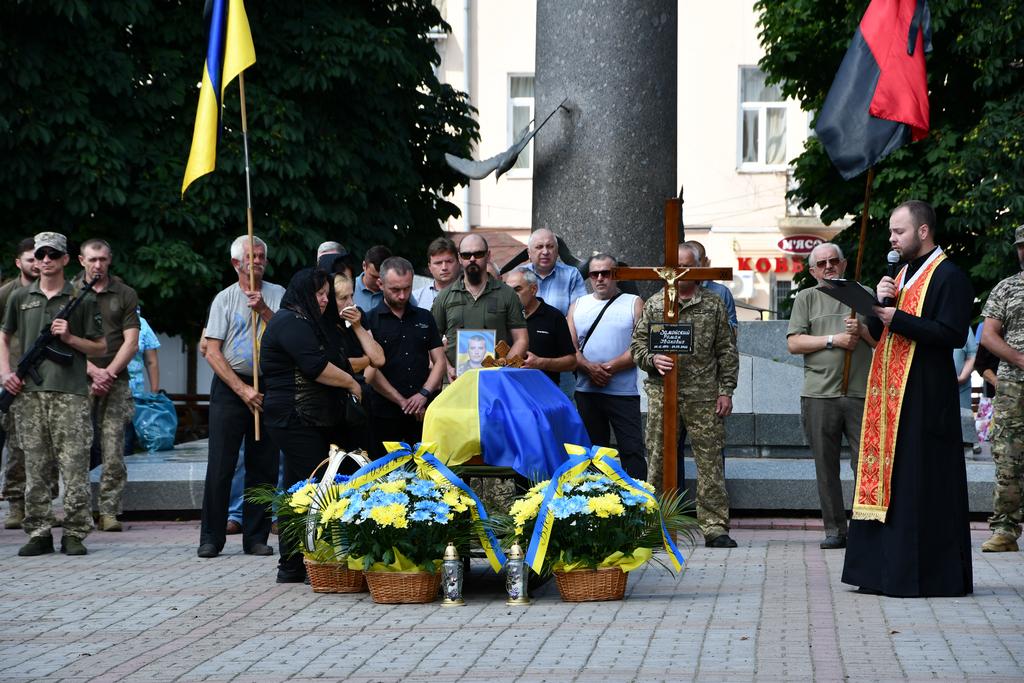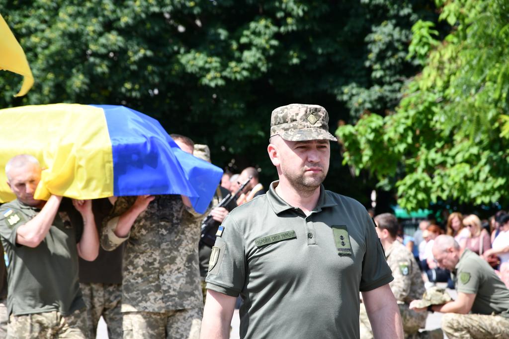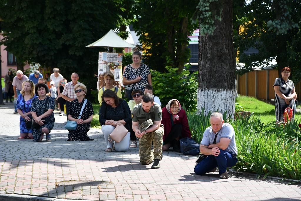 На фото – Рогатинська громада зустрічає Захисника «живим коридором», щоб провести дорогою у Вічність.