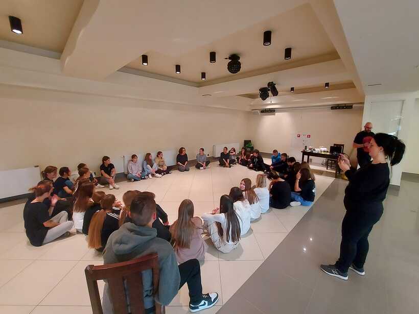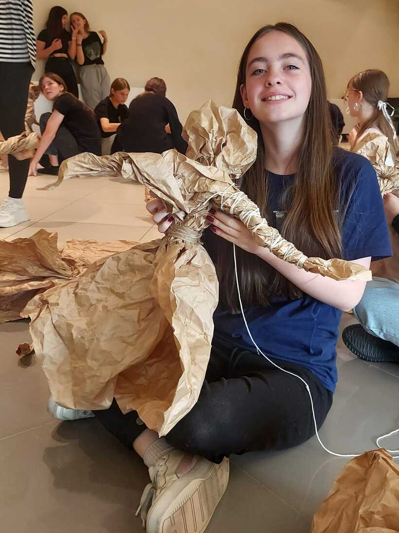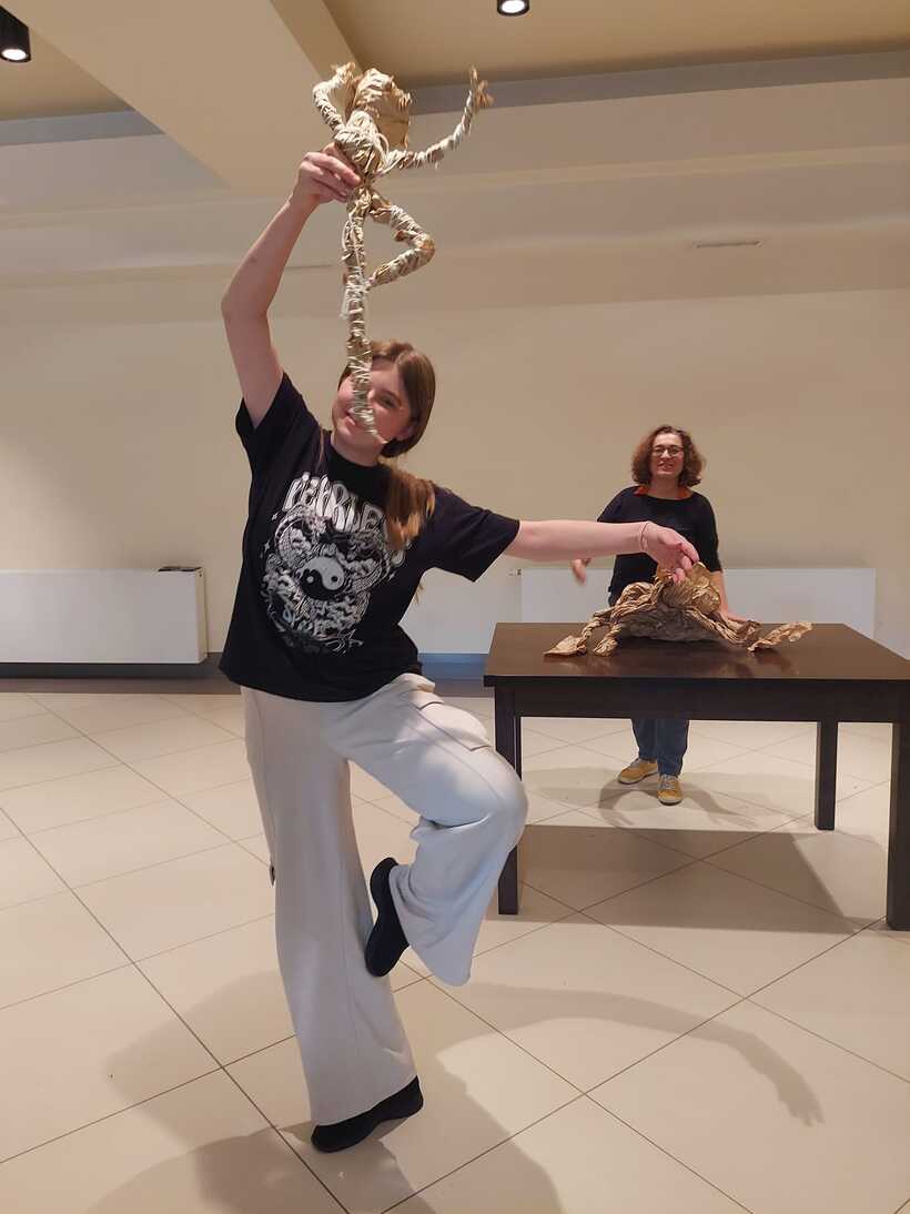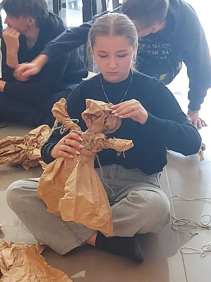 Другий день промайнув непомітно, бо був дуже насичений подіями та емоціями. Спочатку побували на майстер-класі від пані Моніки Філіпович з виготовлення ляльок із паперу. Вчились, як потрібно рухати лялькою на сцені. Згодом поділились на три групи, щоб зробити ляльки для майбутнього театрального етюду. Прогулялись із своїми "шедеврами" до осіннього парку, де влаштували незвичну фотосесію. Провели репетицію. А під кінець дня на нас ще очікувало творче завдання: придумати логотип проєкту, розробити афішу і запрошення.