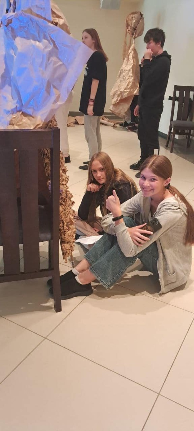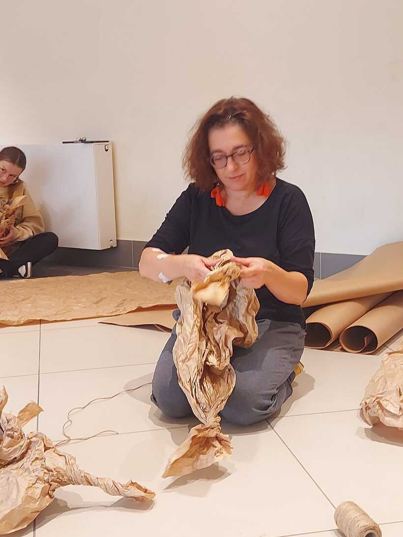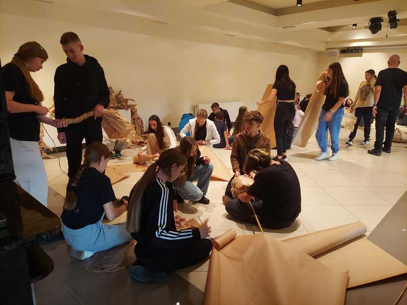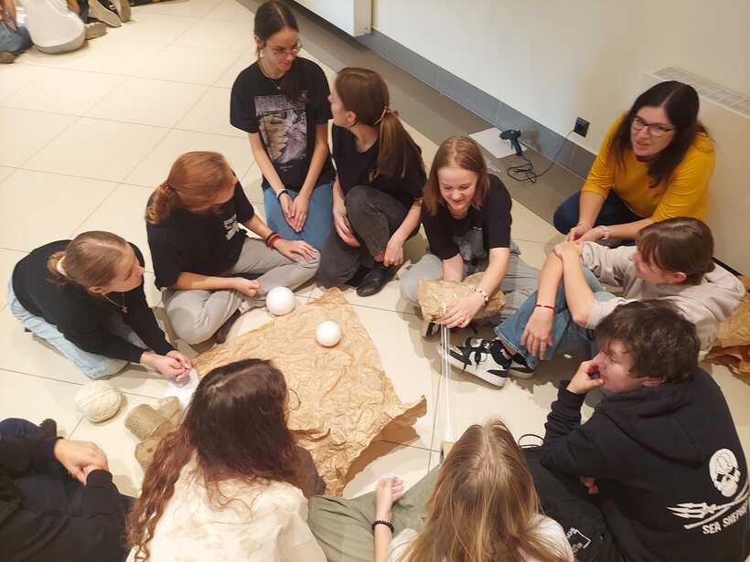 Другий день промайнув непомітно, бо був дуже насичений подіями та емоціями. Спочатку побували на майстер-класі від пані Моніки Філіпович з виготовлення ляльок із паперу. Вчились, як потрібно рухати лялькою на сцені. Згодом поділились на три групи, щоб зробити ляльки для майбутнього театрального етюду. Прогулялись із своїми "шедеврами" до осіннього парку, де влаштували незвичну фотосесію. Провели репетицію. А під кінець дня на нас ще очікувало творче завдання: придумати логотип проєкту, розробити афішу і запрошення.