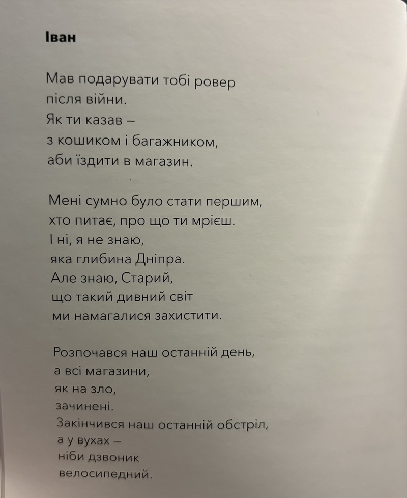 "Це зовсім інше ставлення до слів, інше підбирання слів, – пояснює поет. – Я не підбираю красивіше слово або менш красиве, сильніше чи страшніше. Я намагаюся зрозуміти, яке єдине слово серед усіх в світі має там бути".