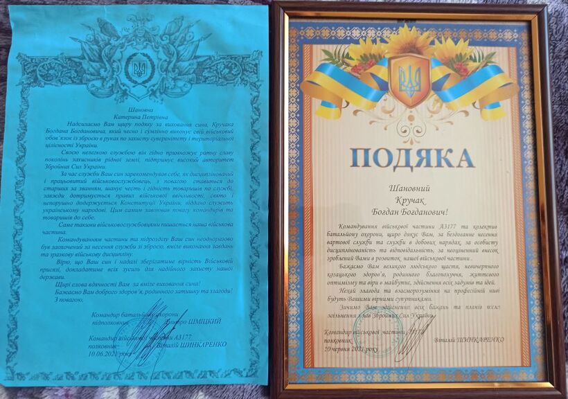 Подяки Богданові Кручаку від військової частини за зразкову службу в армії.