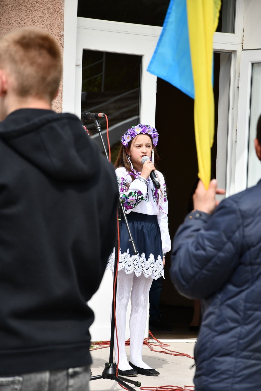 Розпочали вшанування з Державного Гімну України та хвилини мовчання за тими, хто віддав своє життя, захищаючи Україну.