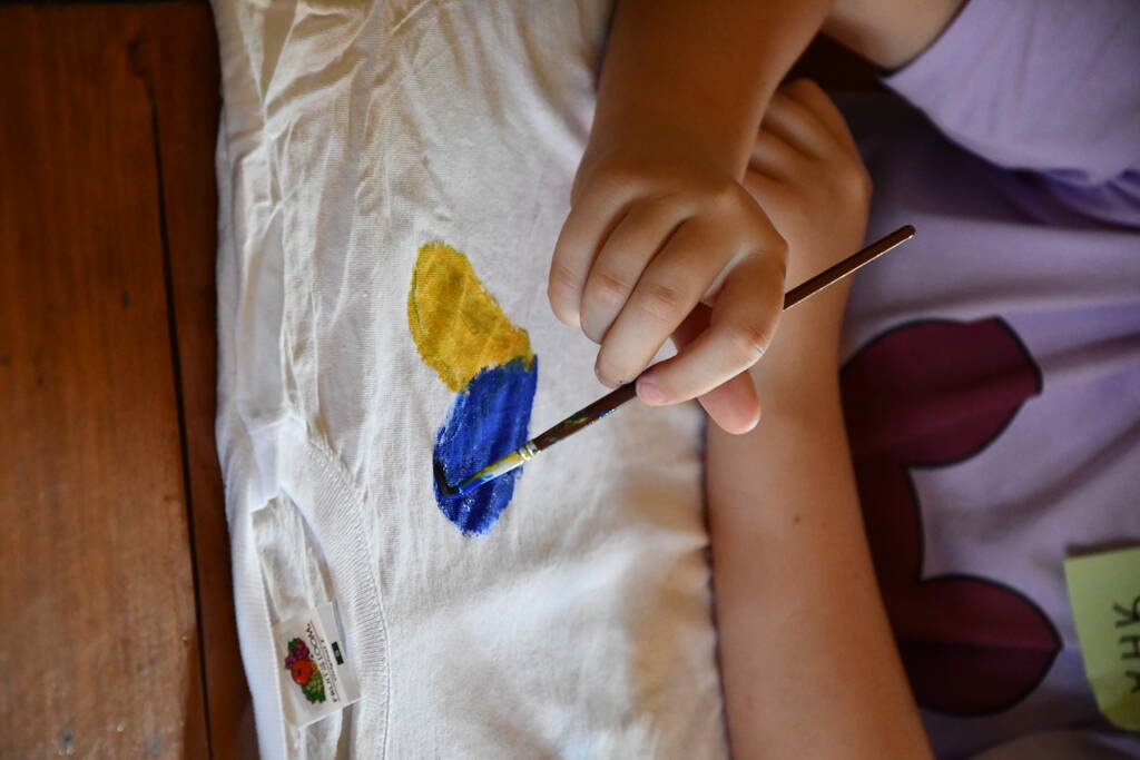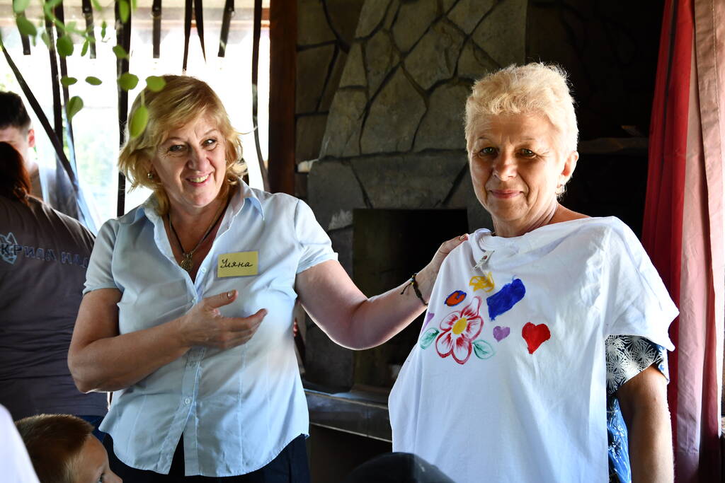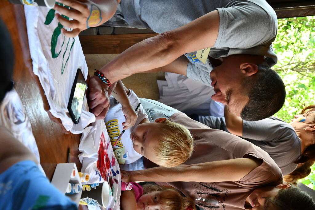 …12 пунктів зі переліку цікавих, розвивальних ігор та розваг, підготованих для дітей нашими волонтерами-аніматорами, вдалось втілити у життя. Команда небайдужих дорослих дарувала дітям своє Серце, залучала до участі в активностях. Інтерактивна програма тривала понад чотири години. Серед ТОП-цікавих запам’яталася на локації руханка, арттерапія з розмальовування футболок. Опанувати її спробували навіть наші крихітки. Їхні футболки вийшли ну ду-у-уже яскравими.