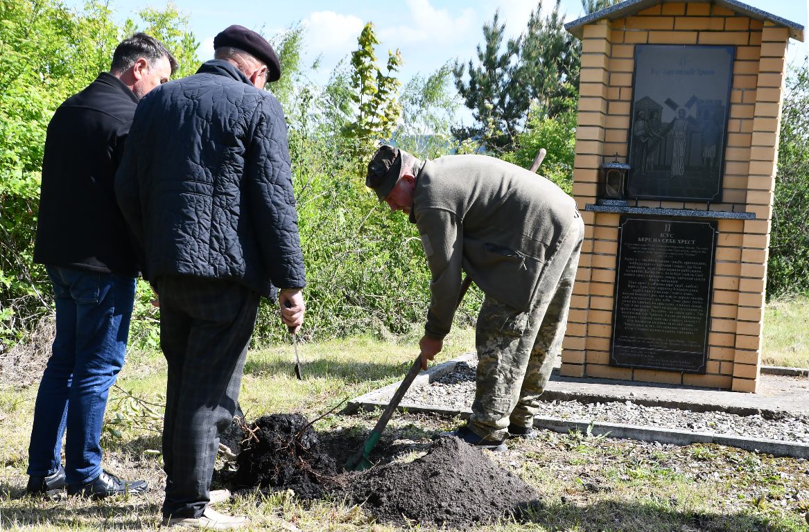 А ось закласти перше дерево у символічній алеї надали Володимиру Польовому. Людині, яка у 2018-му ініціювала спорудження красивої, сучасної Хресної Дороги у селі. Її, до речі, звели на місці старої, закладеної ще за о.Рудницького … Тож його участь в акції — не просто вшанування минулого. Це — крок у майбутнє.