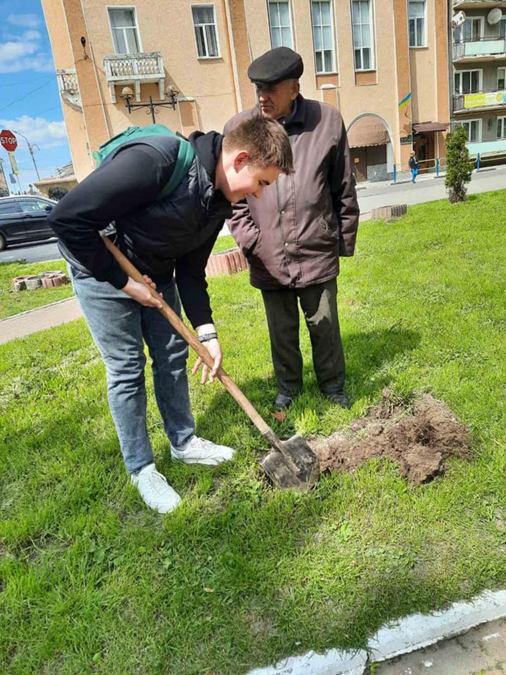 Зібравшись дружньою командою, молодь з завзяттям почала готуватися до висадки десятка декоративних насаджень.