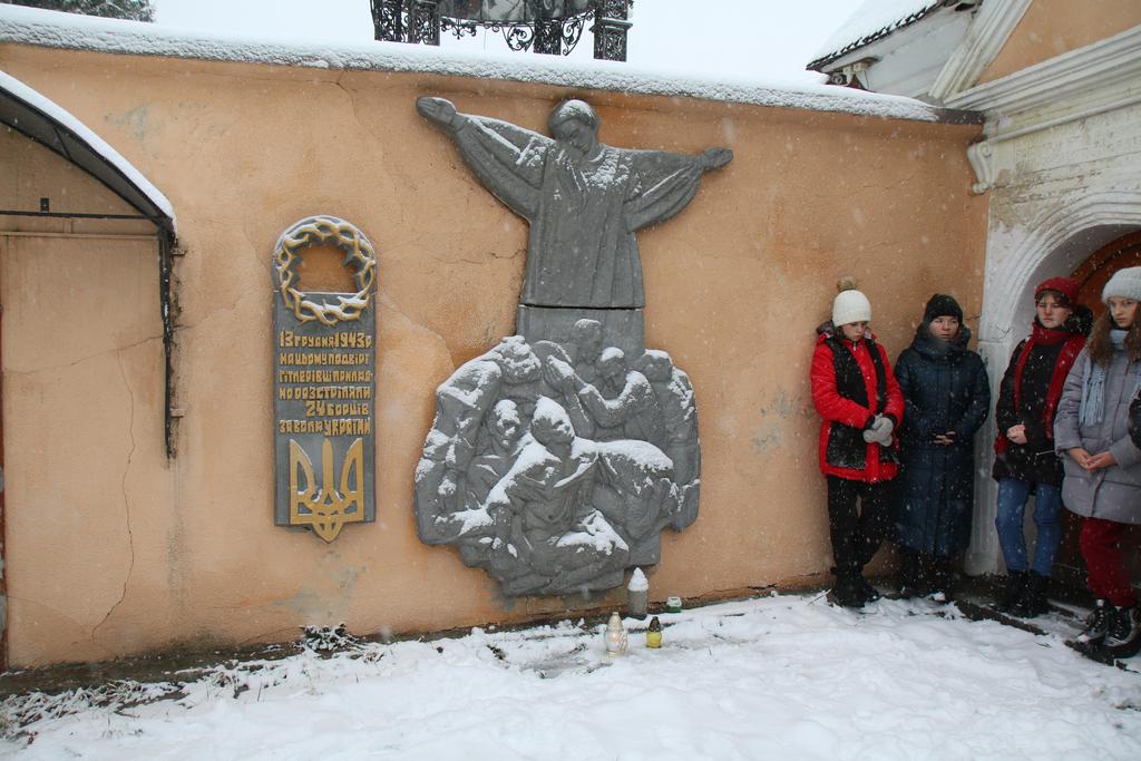 Того ж грудневого дня у далекому 1943 році вони загинули на цьому місці. Як свідчать спогади очевидців, близько 14 години німецька поліція почала зганяти людей до церкви Різдва Пресвятої Богородиці, що в центрі Рогатина. Люди заповнили вулицю і теперішню територію Рогатинської спеціальної школи. З машин вийшло 29 арештованих – вимучені, без ніякої надії на порятунок. Біля церковної огорожі заздалегідь була підготовлена трибуна, стояв стіл. Арештованих змусили ставати на коліна перед трибуною і нагинати голови до землі. На трибуну піднявся німецький офіцер і перекладач. Було зачитано вирок – розстріл на місці. Відтак засуджених до страти викликали по 5-6 осіб і ставили біля стіни...