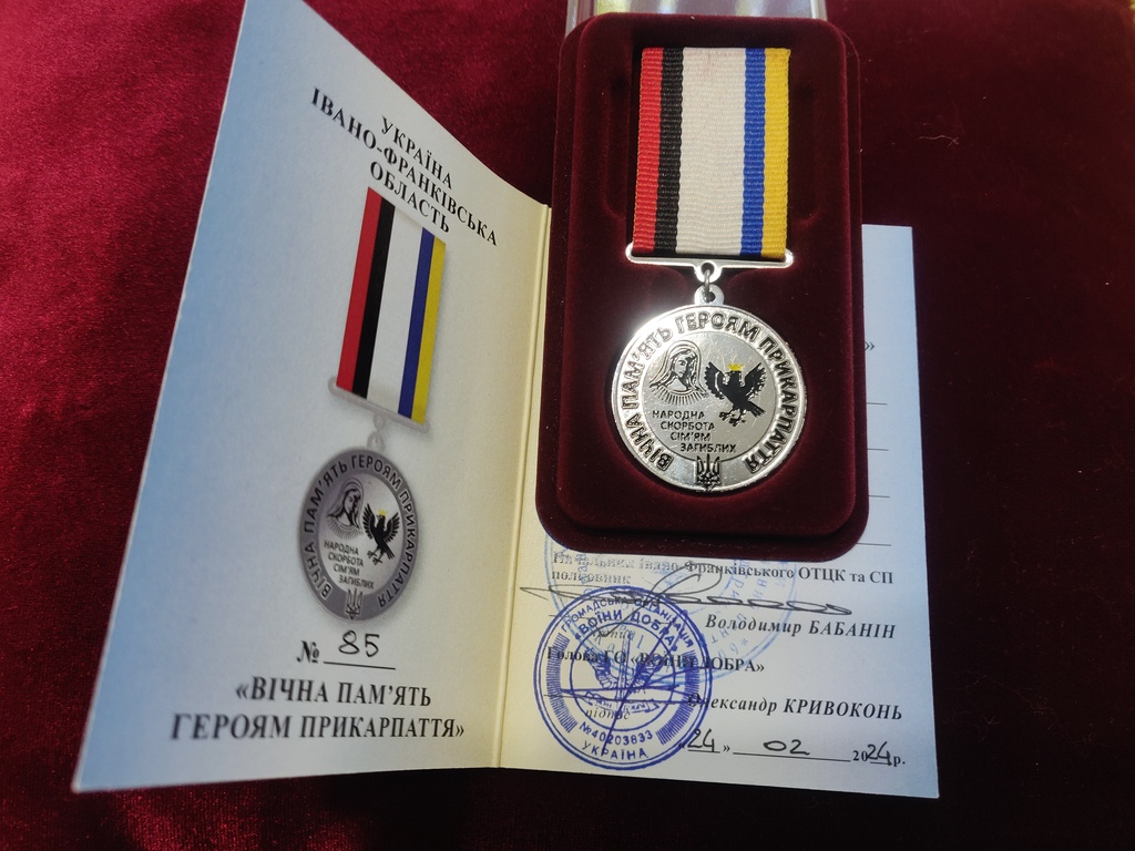 Під час візиту посмертними медалями «Вічна пам'ять Героям Прикарпаття» відзначено два десятки наших військовослужбовців. Їх нагороди вручили родинам.