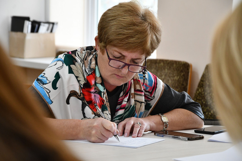 Під милозвучне читання актора і театрального режисера Олексія Гнатковського стараємось каліграфічно виводити перші рядки «Доріг України». Зауважимо, що цей неймовірно глибокий текст написала Катерина Калитко, лауреатка Шевченківської премії, поетеса, перекладачка, авторка прозових творів.