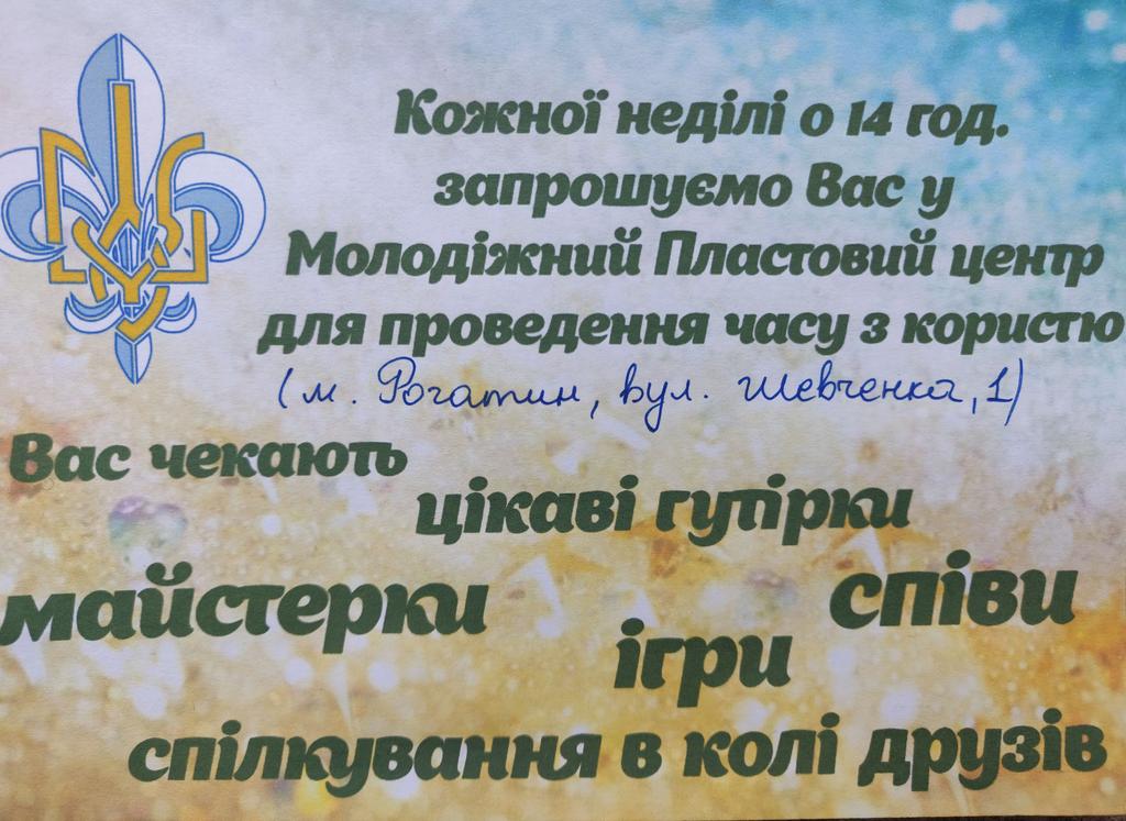 неділі дітей запрошує молодіжний пластовий центр. Рогатинський будинок культури