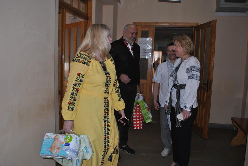 Від імені громади С.Насалик урочисто вручив найменшим жителям Рогатинщини цінні подарунки – вишиванки та пакети з найнеобхіднішим для немовлят (памперси, присипки тощо).