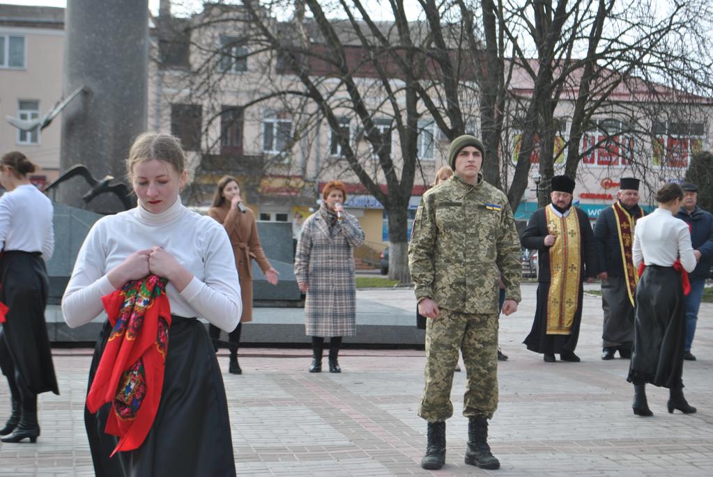 Під час заходу краяни взяли участь у панахиді за душі загиблих Героїв, а також покладанні квітів й лампадок до стели Небесній Сотні.