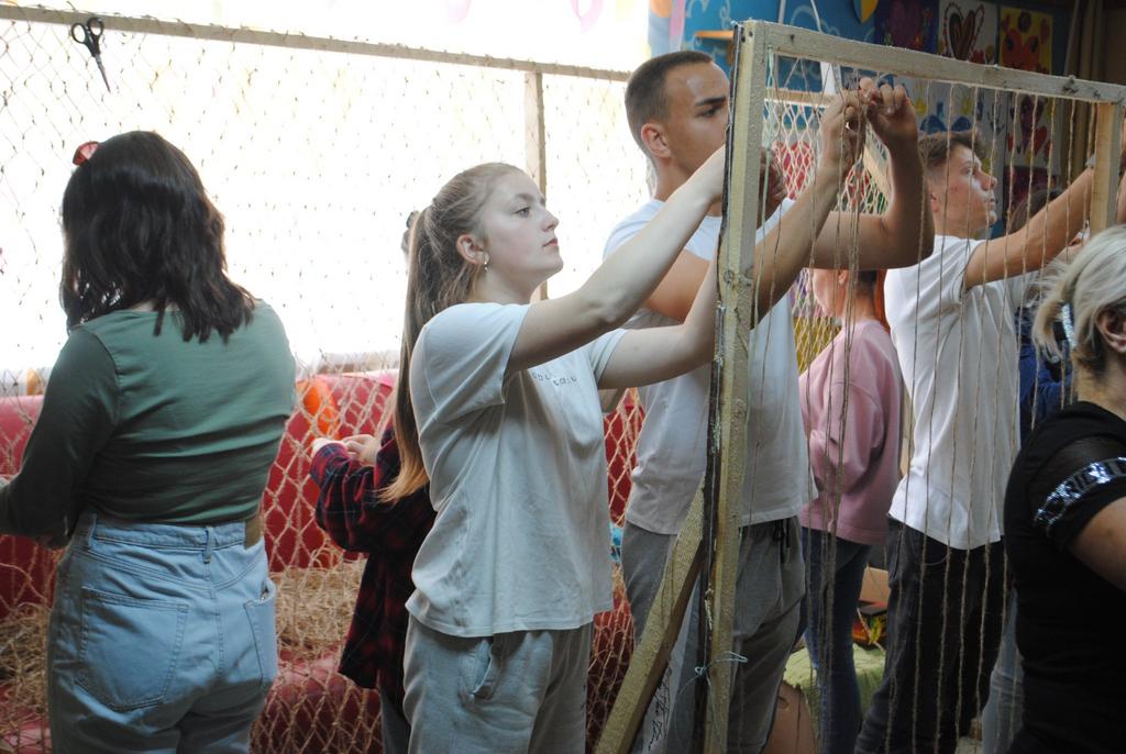 Діти долучилися до плетіння маскувальних сіток у Рогатинському ЦДЮТ. А навчала ремесла плетіння сіток керівник гуртка центру Лілія Горинь.