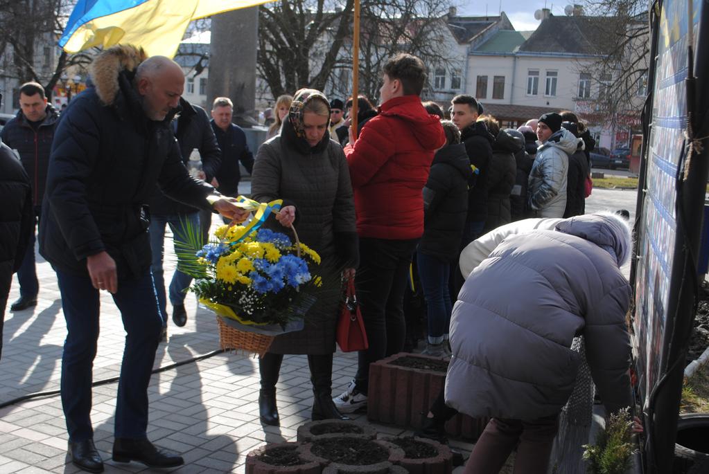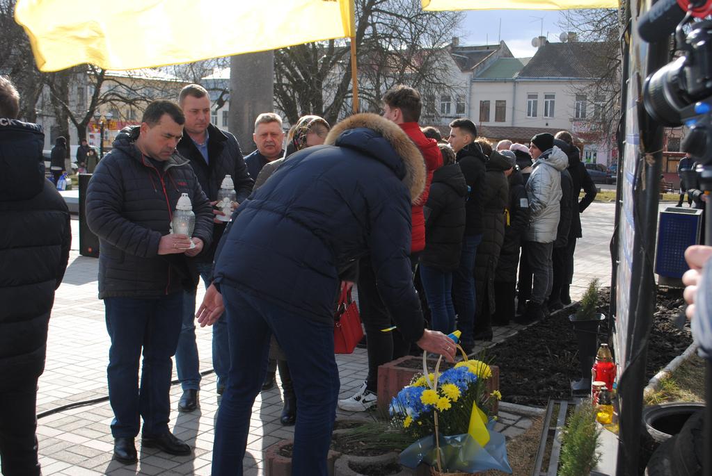 У знак шани загиблих учасників подій жителі громади та представники влади поклали лампадки і квіти до стели Героям Небесної сотні. Відтак священнослужителі відправили поминальну панахиду за невинно убієнних українців.До слова-пам’яті було запрошено міського голову Сергія Насалика та майданівця, учасника бойових дій Василя Байду.